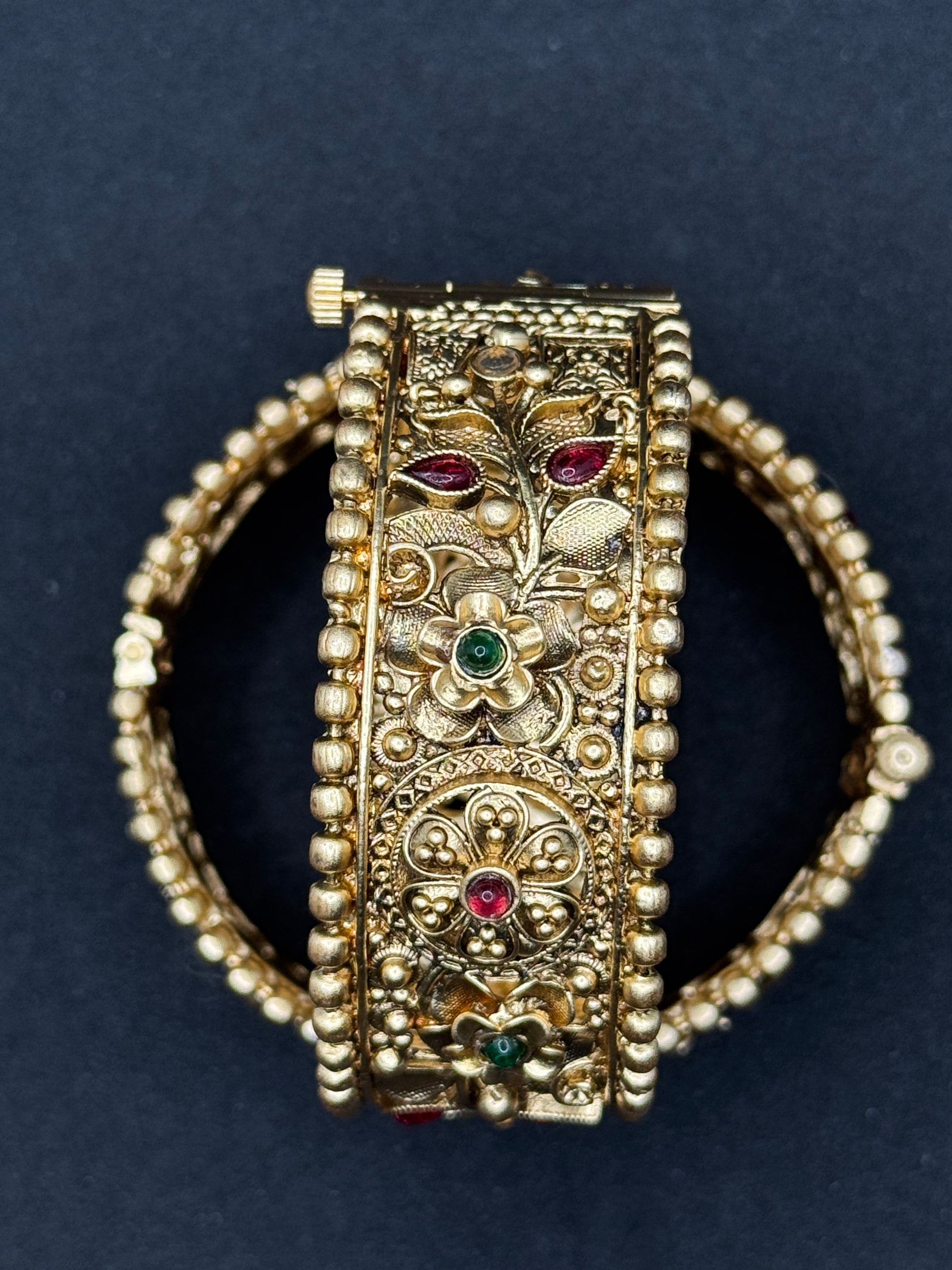 Antique Design Gold Bangles with Intricate Carvings and Gemstones 2*6
