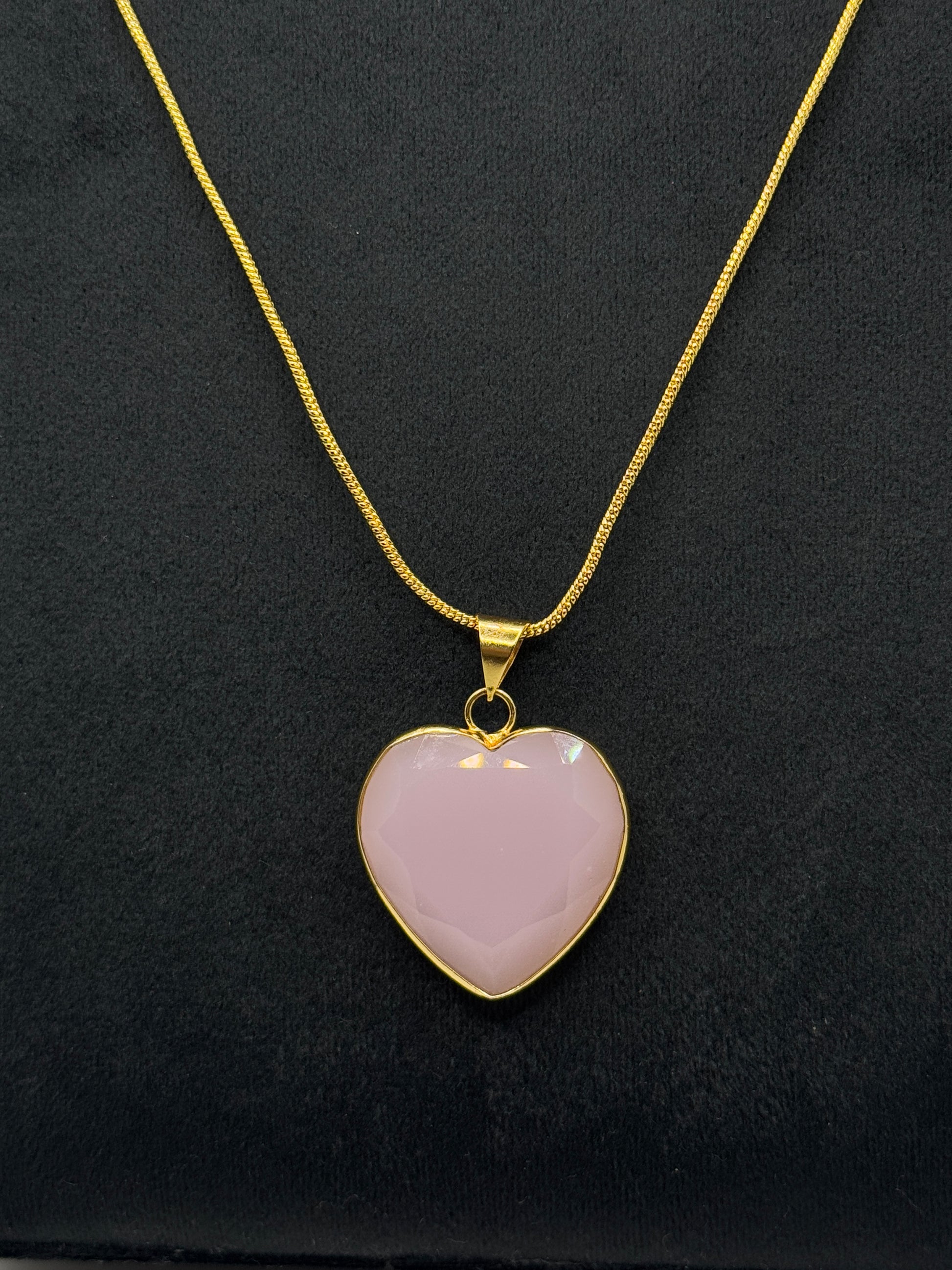 Radiating elegance and softness, the Blush Heart Charm Necklace features a delicate heart-shaped pink stone set in a sleek gold frame. Suspended from a fine gold-toned chain, this pendant is the perfect symbol of love and grace. Whether worn solo or layered, it adds a romantic, minimalist touch to both everyday and special occasion looks. Ideal for gifting or cherishing as a timeless keepsake.