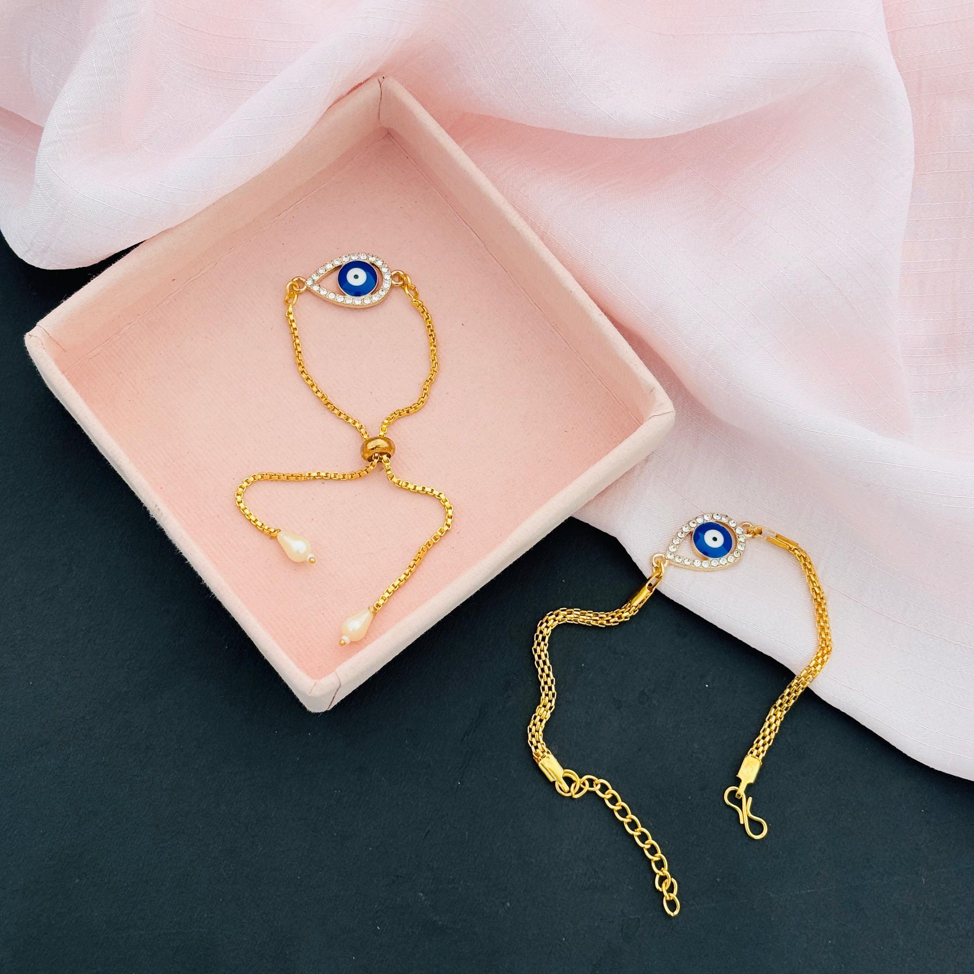 Evil Eye Duo Charm Rakhi for Bhaiya bhabhi with kumkum and rice– Gold-Toned Protection Set