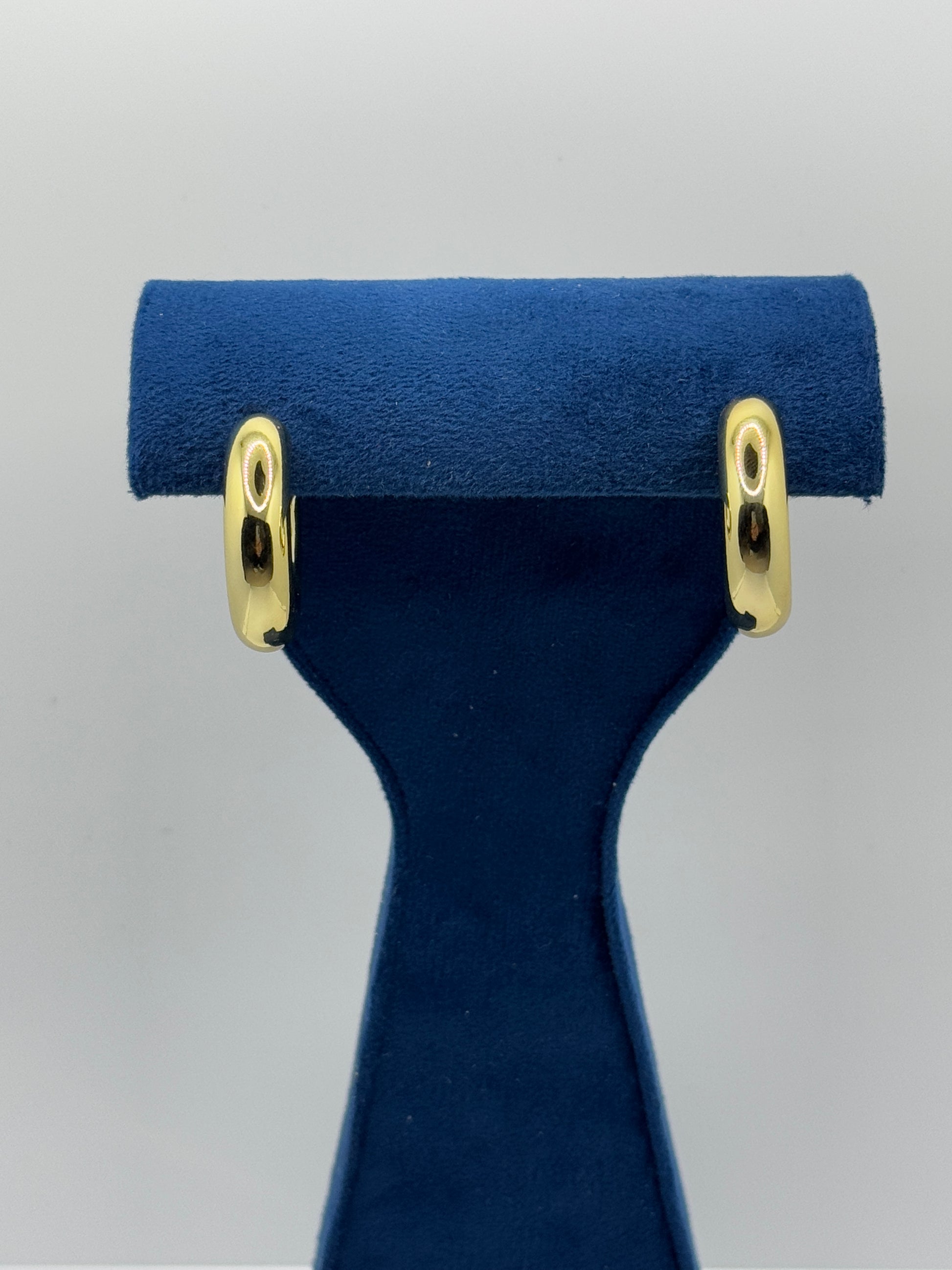 Simple yet elegant, these gold-tone D-shaped hoop earrings offer a timeless and versatile design. Their clean lines and polished finish make them a perfect everyday accessory.