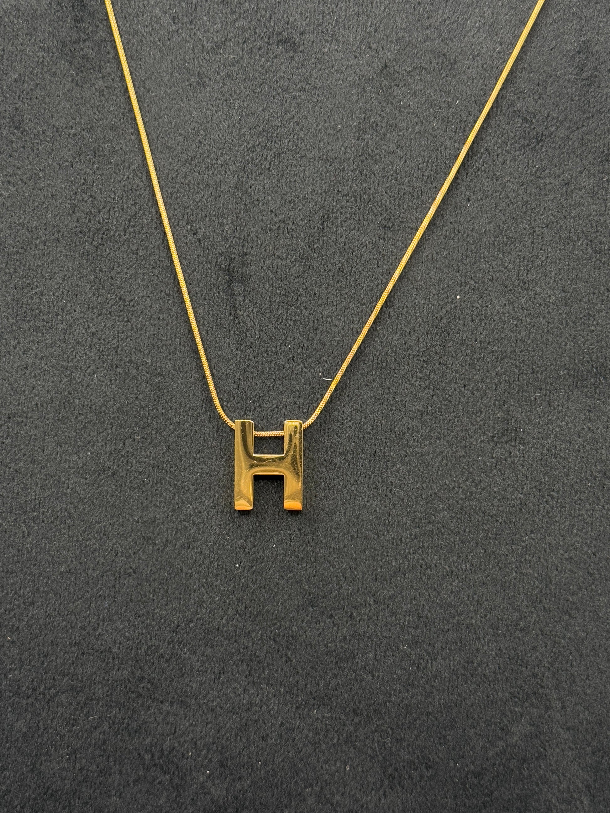 A minimalist gold-tone necklace featuring a petite and polished initial 'H' pendant. This personalized piece is perfect for a subtle statement or as a thoughtful gift.