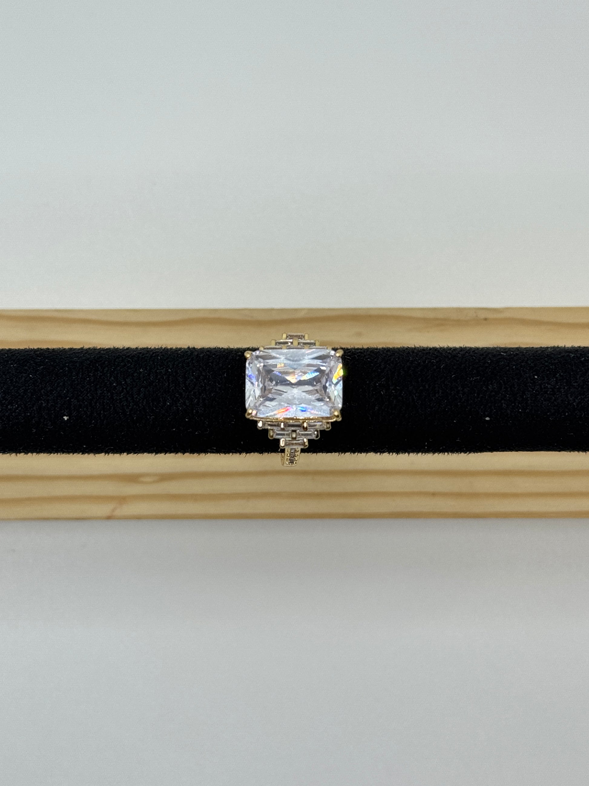 Large Radiant Cut Crystal Ring with Art Deco Band