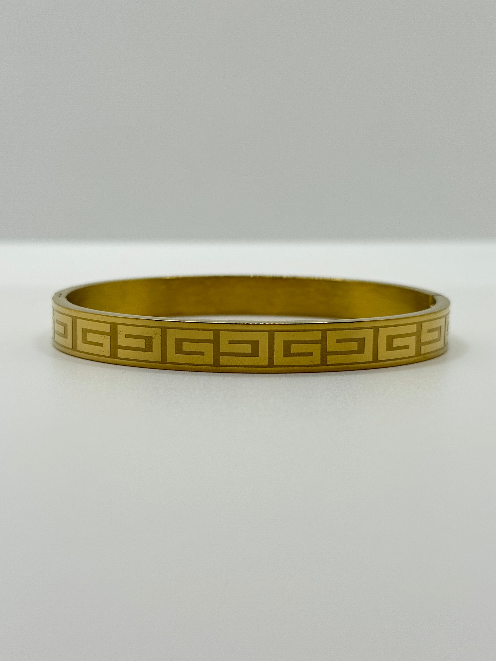 Men's Gold Greek Key Engraved Cuff Bracelet
