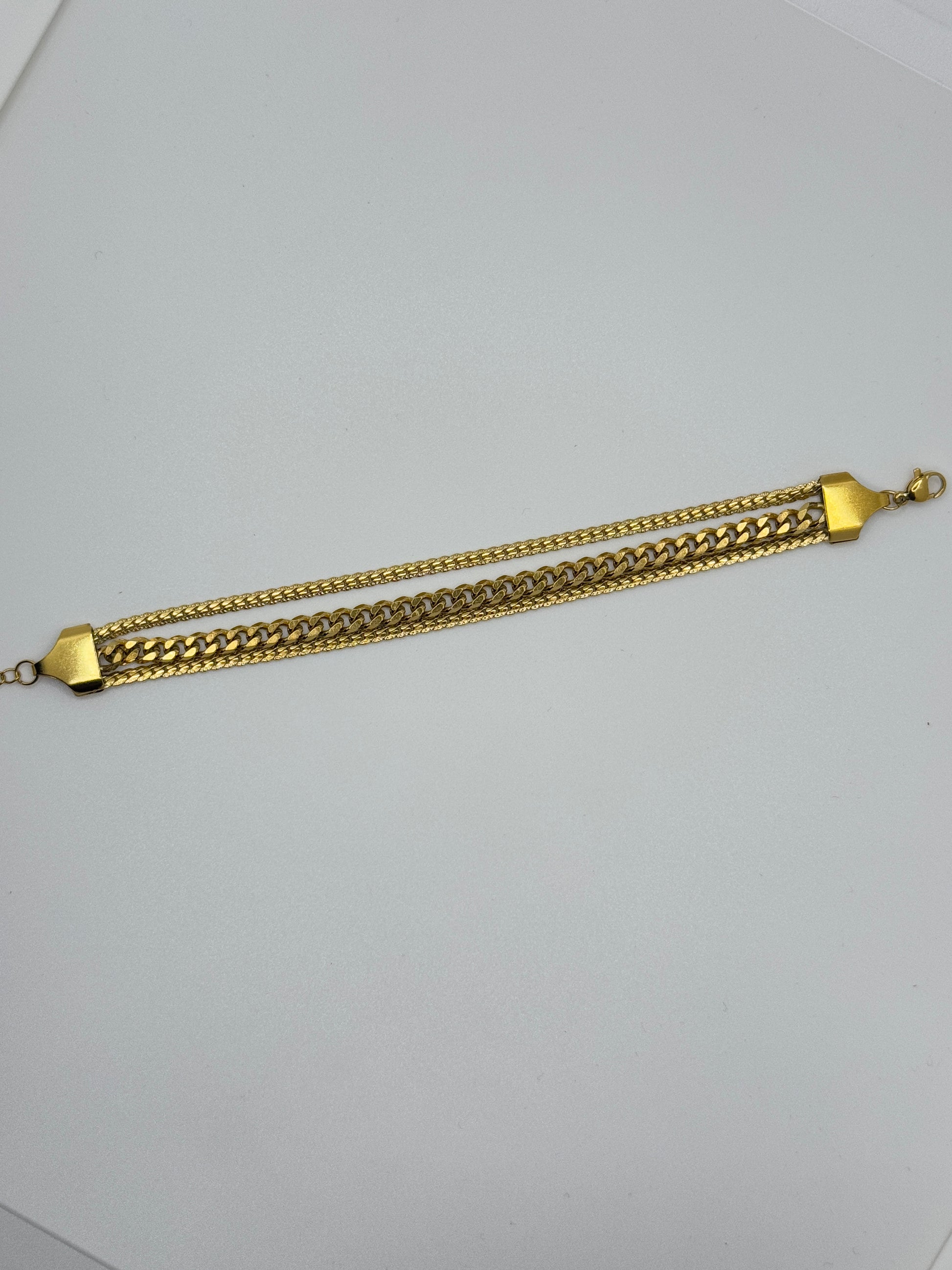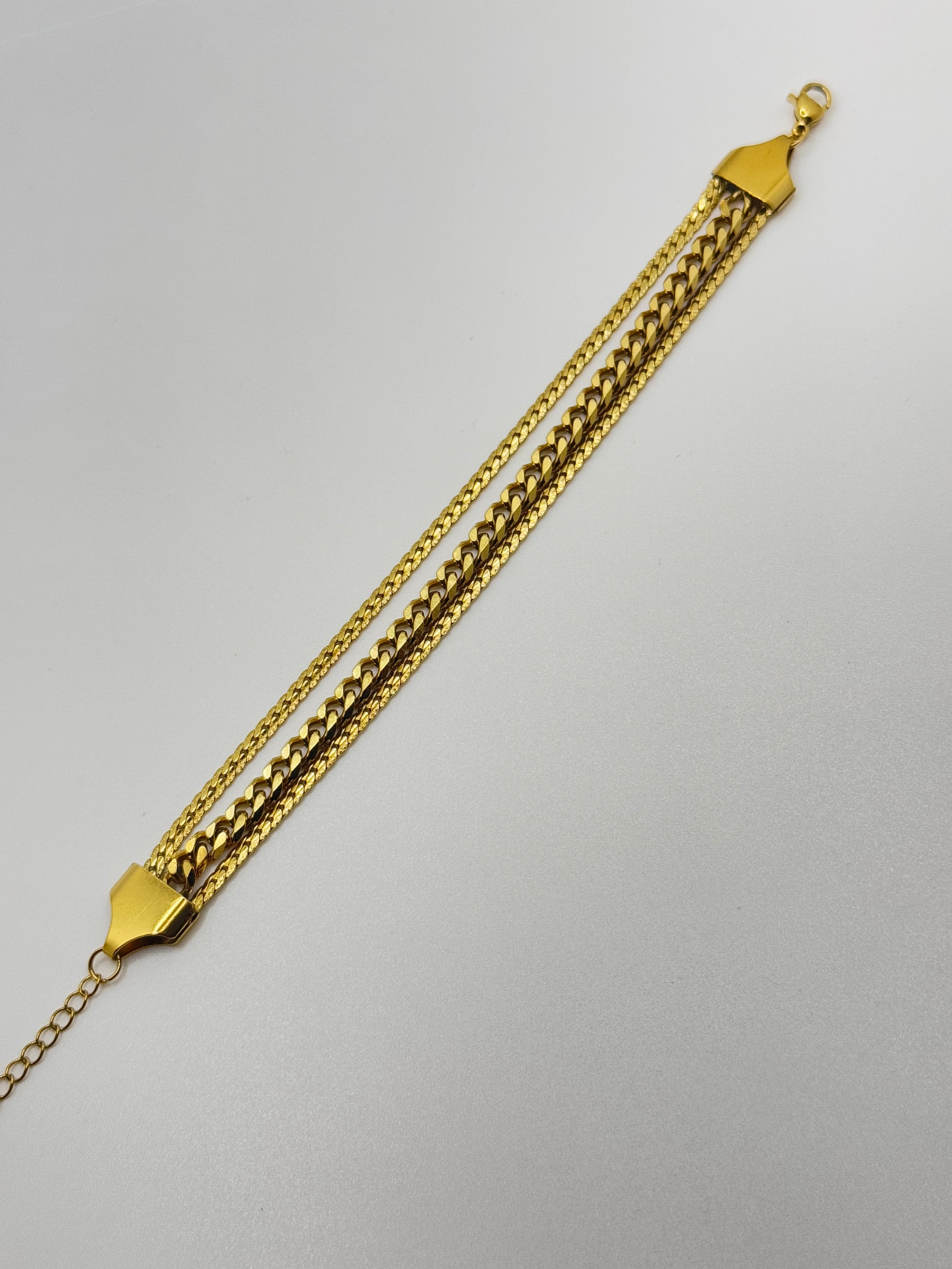 Multi-Layered Gold Chain Bracelet with Mixed Textures