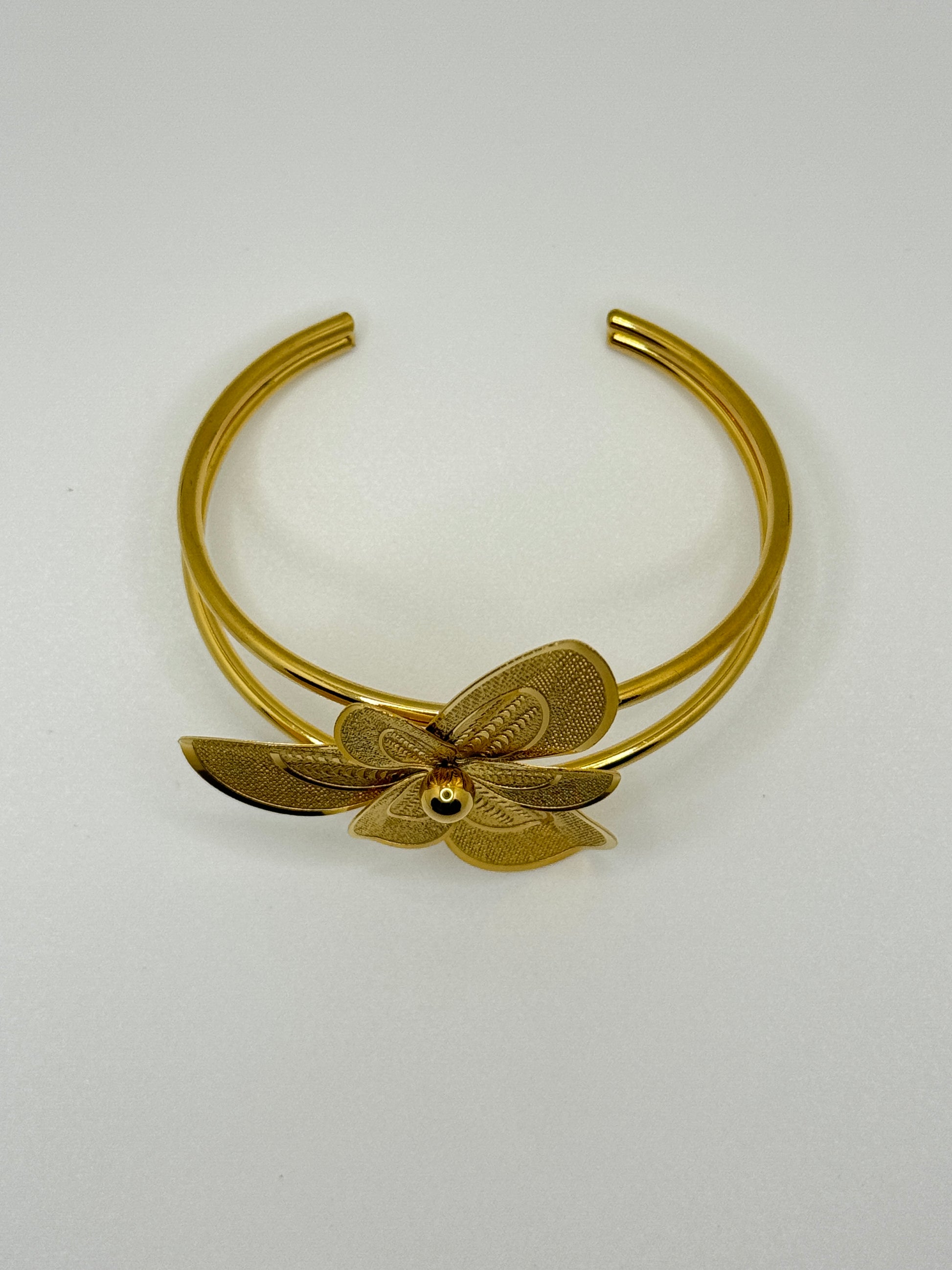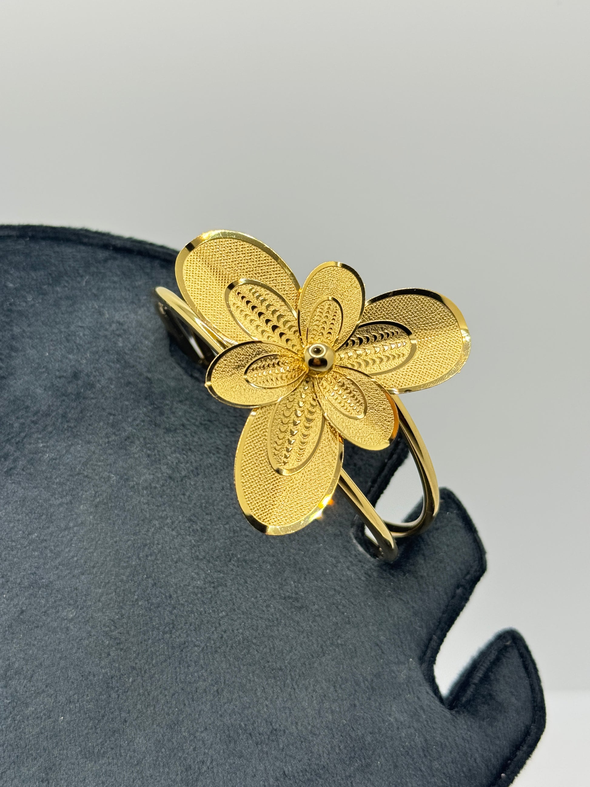 Ornate Gold Flower Open Cuff Bracelet