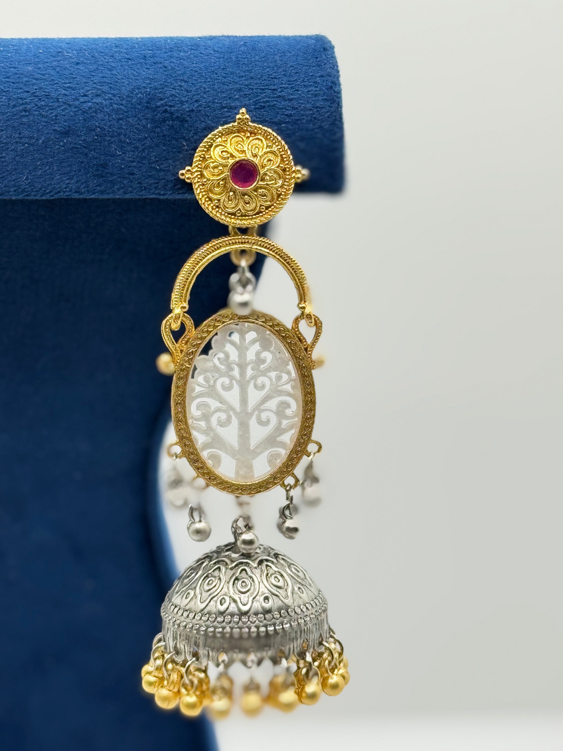 Red Stone Dual-Tone Tree Jhumkas