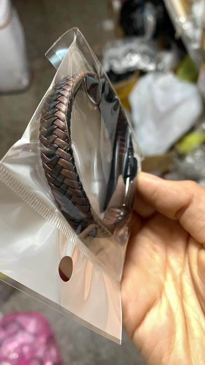 Retro woven leather mens bracelet with magnetic buckle